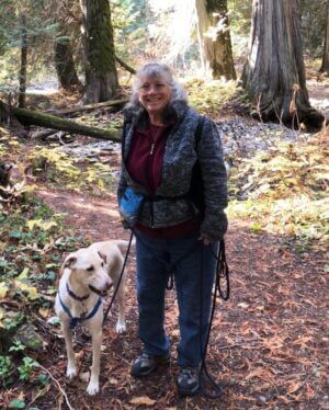My dogs eagerly check-in by my side (on or off leash) when I reward them with yummy treats. A 4 or 6-foot leash keeps them close when there’s lots of trail traffic. I use a 15-foot long line when the trail or walkway is not crowded.